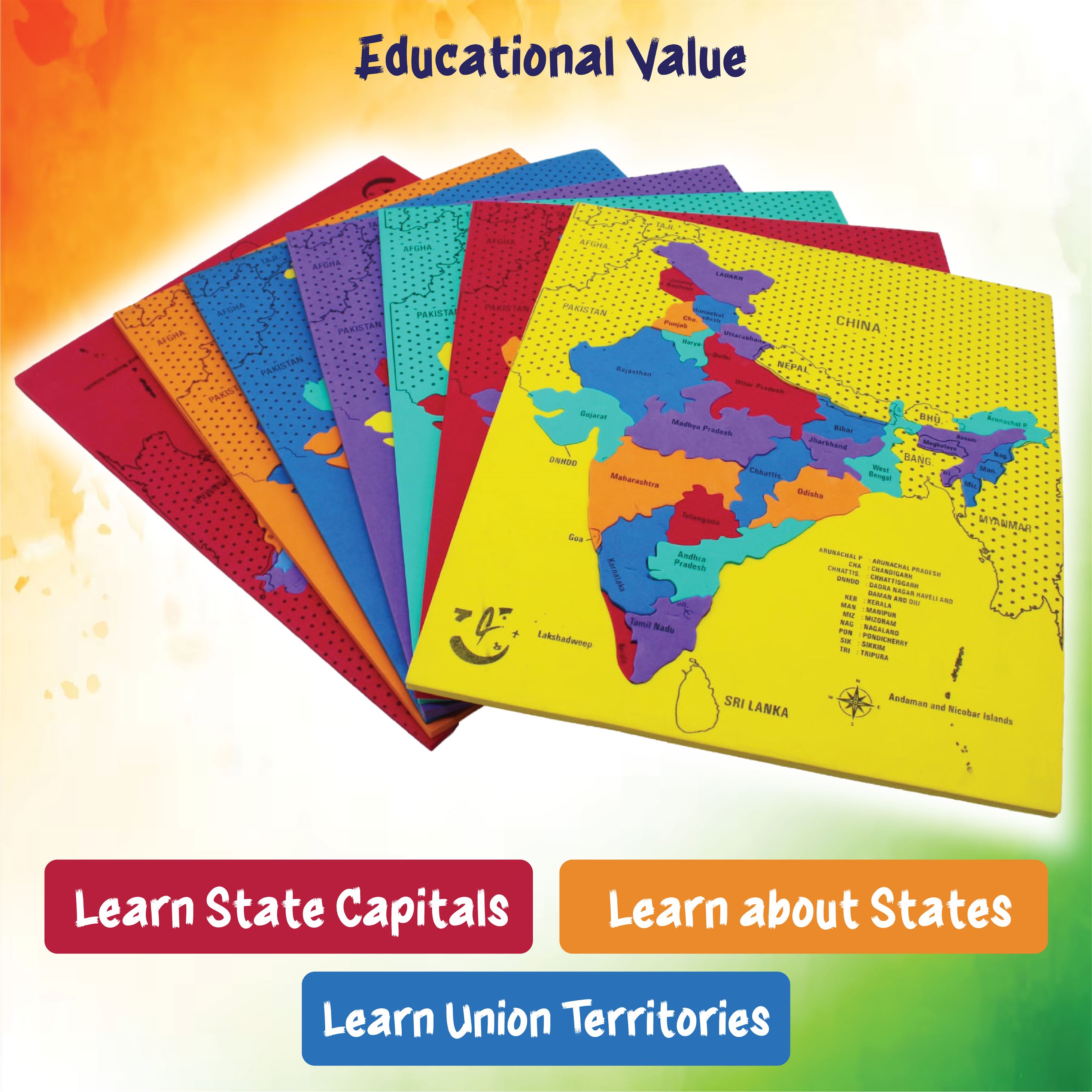 Geography Learning: Explore the geography of India while assembling the puzzle, developing spatial awareness and geography knowledge in an interactive way. |