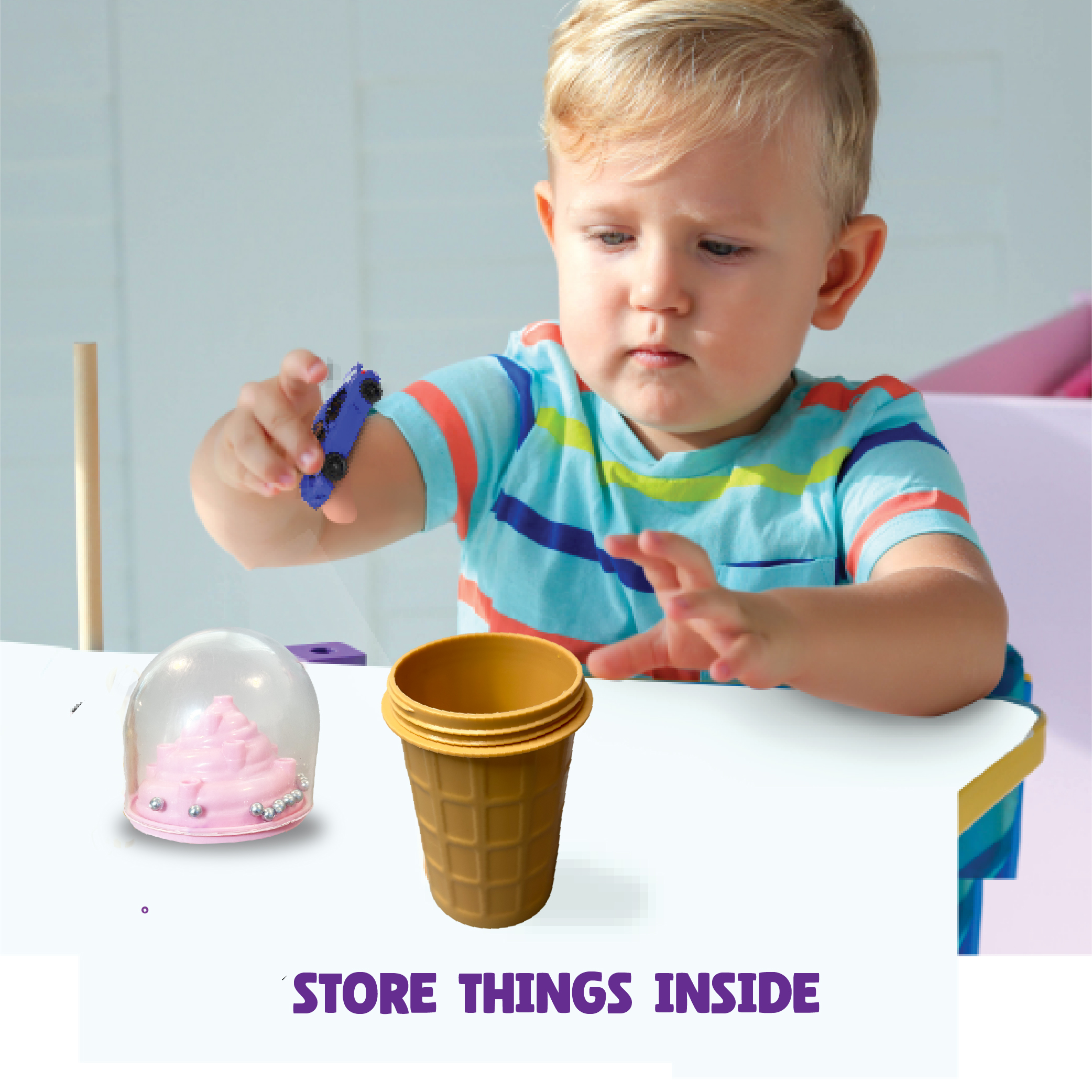 2-in-1 Play: Store small treasures or surprises in the "cone" and enjoy the magnetic ball game in the creamy swirl. |