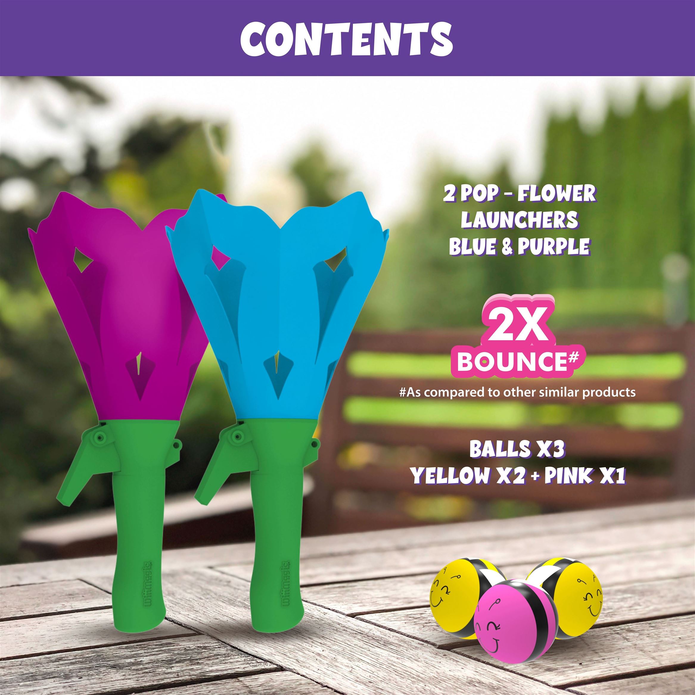 PlayMagic's Flowers & Bees Pop N' Catch is a fun and interactive outdoor & indoor toy that combines click-and-catch action for hours of active play. With easy-to-use handheld poppers in the shape of a flower, players launch and catch balls with a 2x bounce.Perfect for kids and families to enjoy together.Can be played anytime anywhere!